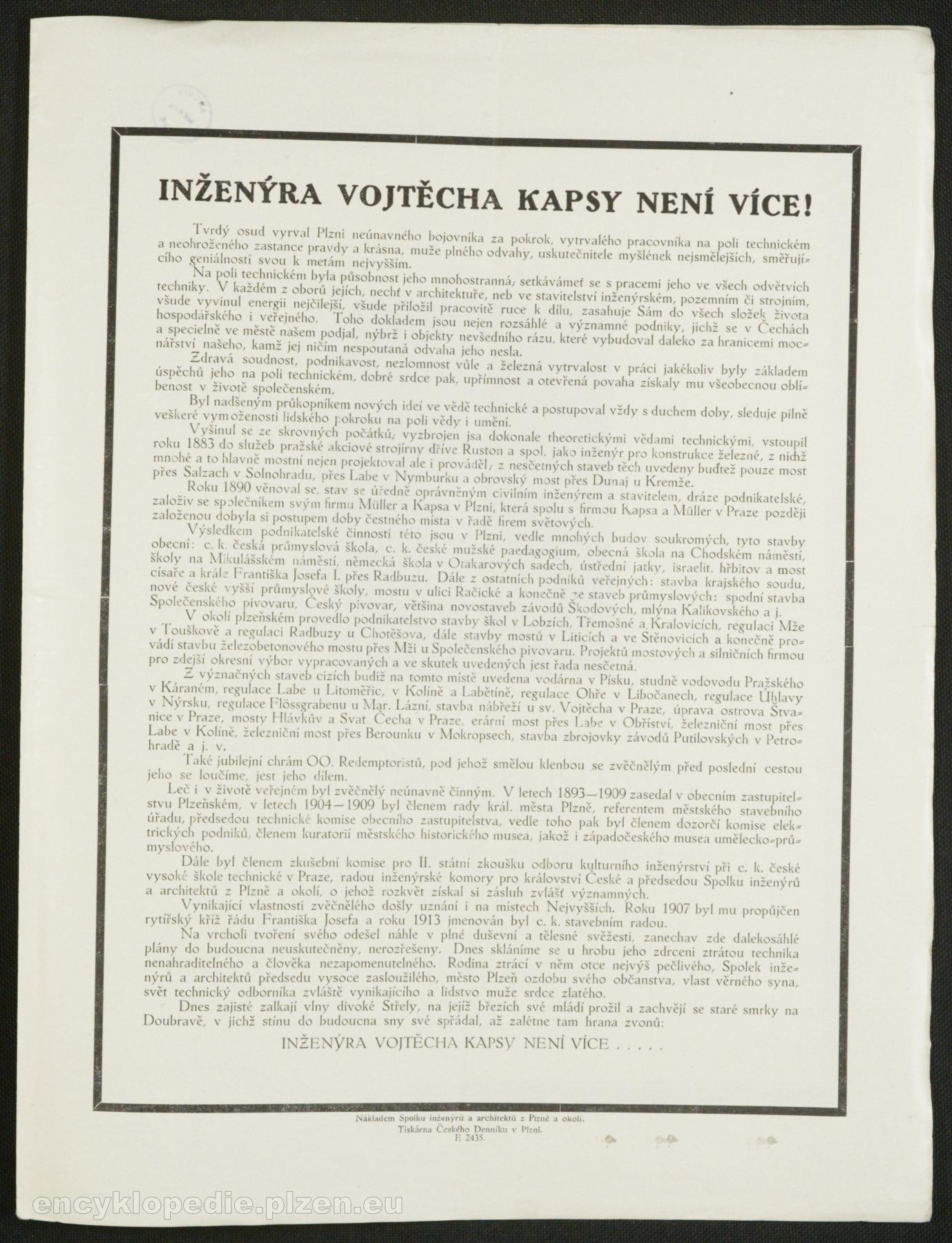 1910 jmenován členem zkušební komise pro druhou státní zkoušku z oboru kulturního inženýrství na C. k. české vysoké škole technické v Praze