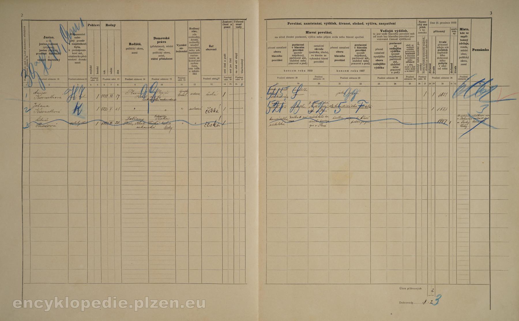 – 10. 4. 1910– 6. 1. 1912 zatímní učitelka na II. obecné dívčí škole v Plzni, jižní obvod
