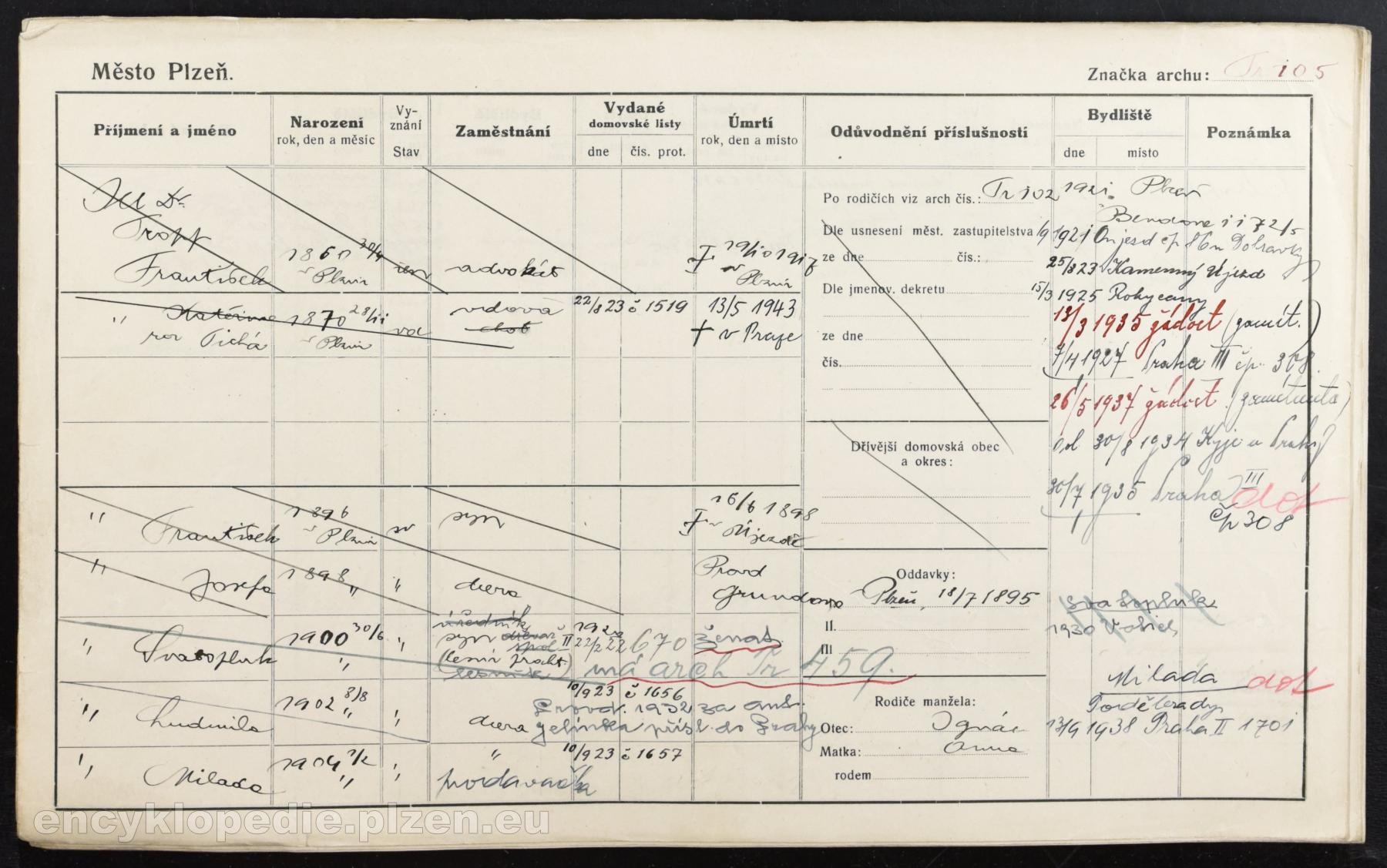 sňatek: 18. 7. 1895 Plzeň