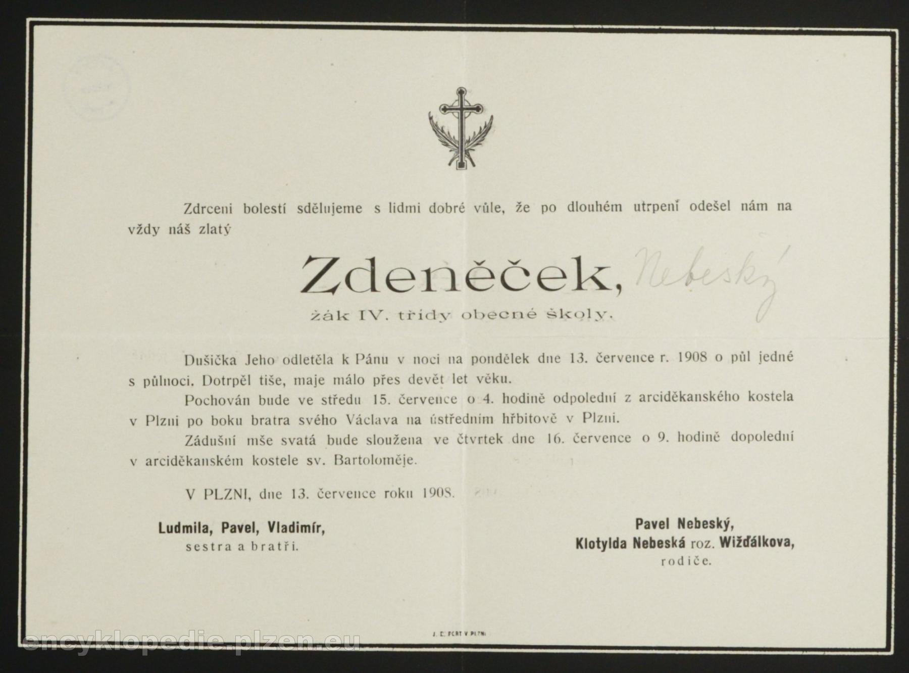 * 24.1.1899 Praha-Smíchov † 13.7.1908 Plzeň
