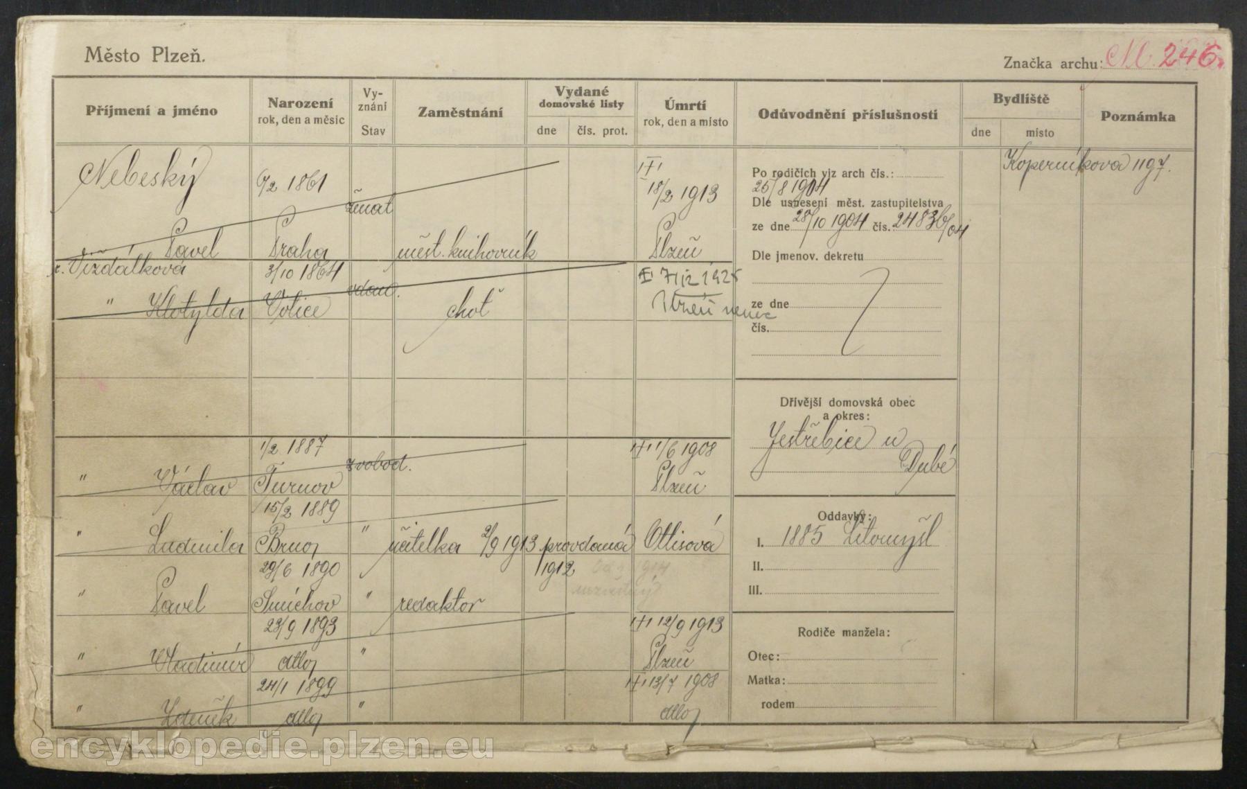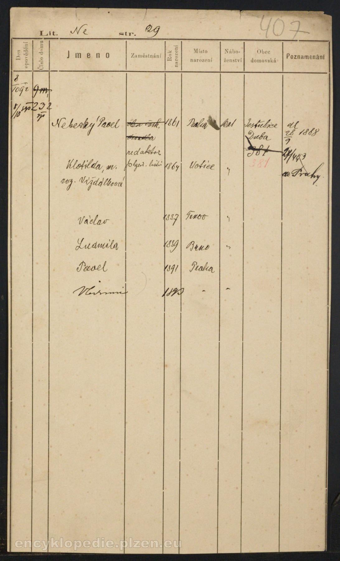 AHMP, Magistrát hlavního města Prahy I., Soupis pražského obyvatelstva 1830-1910 (1920), Cizí příslušníci, p. č.147 Nebeský Pavel.