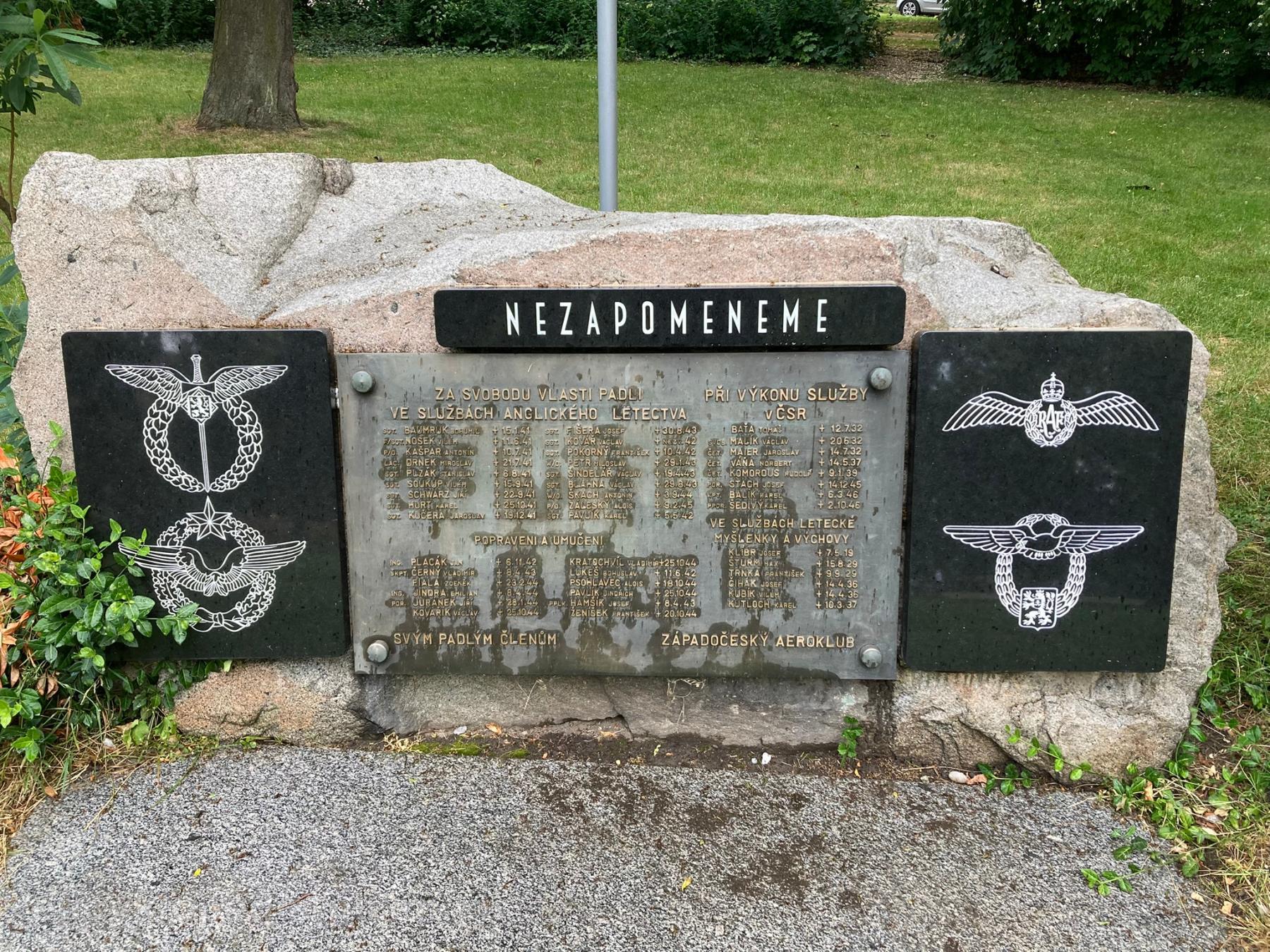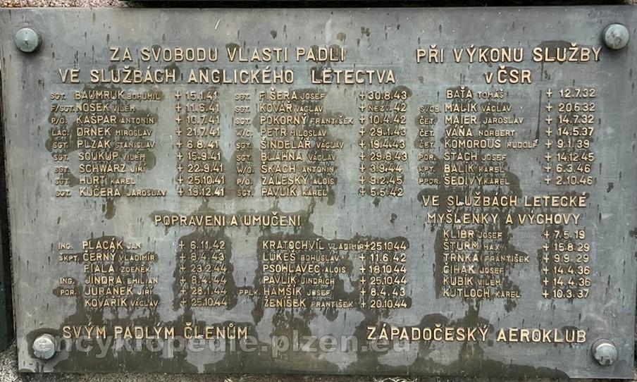 Původně se pomník nacházel na levé straně silnice k bývalému letišti Aeroklubu Plzeň-Bory (křižovatka ulic Univerzitní a Dobřanská)